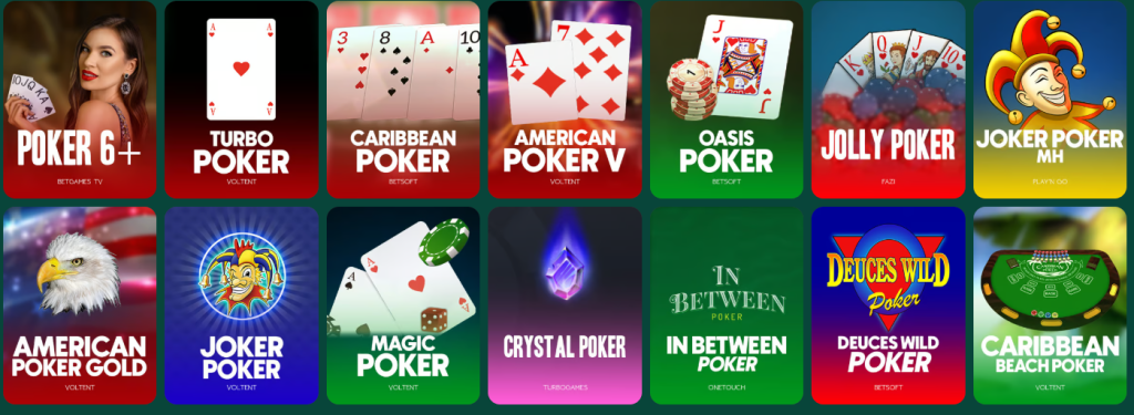 Samotná herní nabídka v nejlepším online casinu je zásadní, protože přímo ovlivňuje herní zážitek i možnosti, které hráči mají k dispozici. Kvalitní platforma by měla nabízet dostatek pokerových variant. Rozhodně by neměly chybět Texas Hold’em a Omaha, stejně tak jako méně hrané formáty, jako např. Seven-Card Stud, Caribbean Stud Poker nebo další exotické varianty s unikátními pravidly.