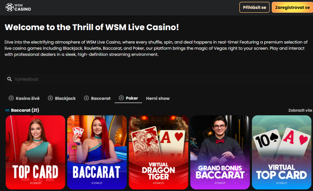 - WSM Casino – Casino a sázková kancelář s uvítacím bonusem až 25 000 $