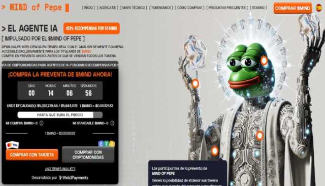Mind of Pepe ($MIND) es una original propuesta que combina la IA con los activos digitales. La preventa de esta criptomoneda de inteligencia artificial supera los 5 millones de dólares, registrando un aumento de capital de 100.000 dólares en unas horas. En esta etapa, el token se cotiza en 0.0032532 dólares.