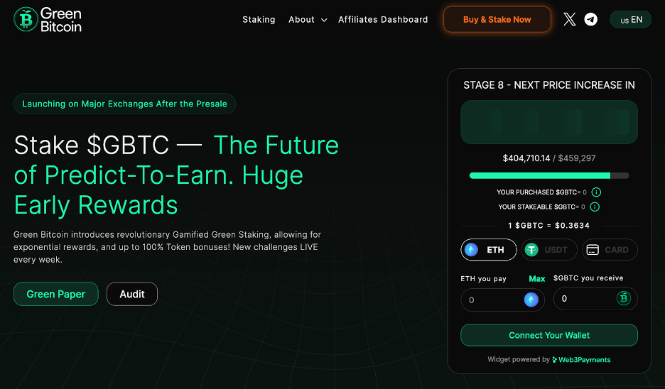 As a result, Green Bitcoin has gamified Bitcoin price predictions through a staking model that incentivizes engagement and creates scarcity for the $GBTC token on the open market following the presale.