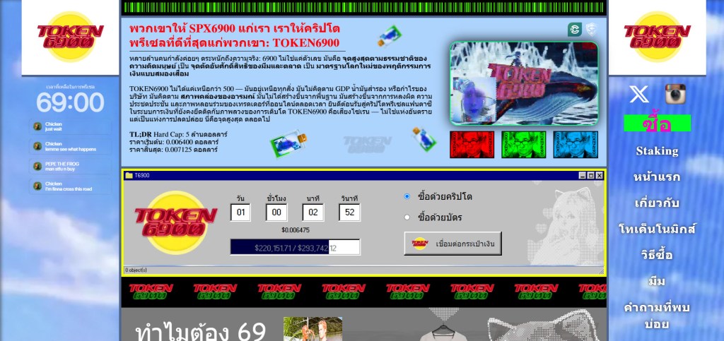 TOKEN6900 ไม่ได้เป็นเพียงเหรียญมีมธรรมดา แต่มาพร้อมกับแนวคิดที่เรียกว่า “Brain Rot Finance” หรือที่แปลว่า “การเงินสมองเน่า” ซึ่งเป็นการผสมผสานระหว่างวัฒนธรรมมีมสุดปั่นเข้ากับโลกการเงินอย่างลงตัว