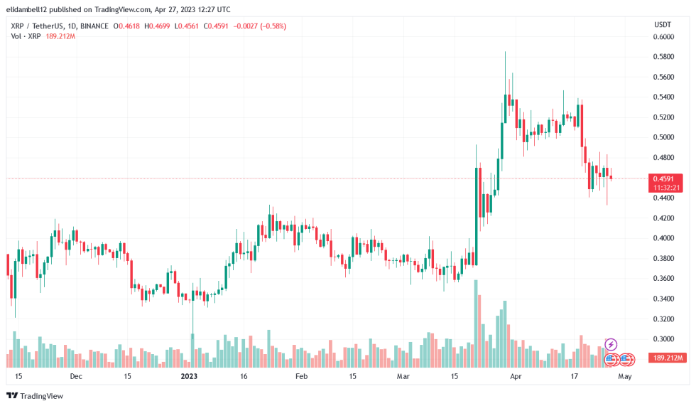 As of press time, it trades at $0.4591, indicating a price loss of 3.30%. The coin is reacting to the market-wide downtrend, which has pushed many coins to the red zone.
