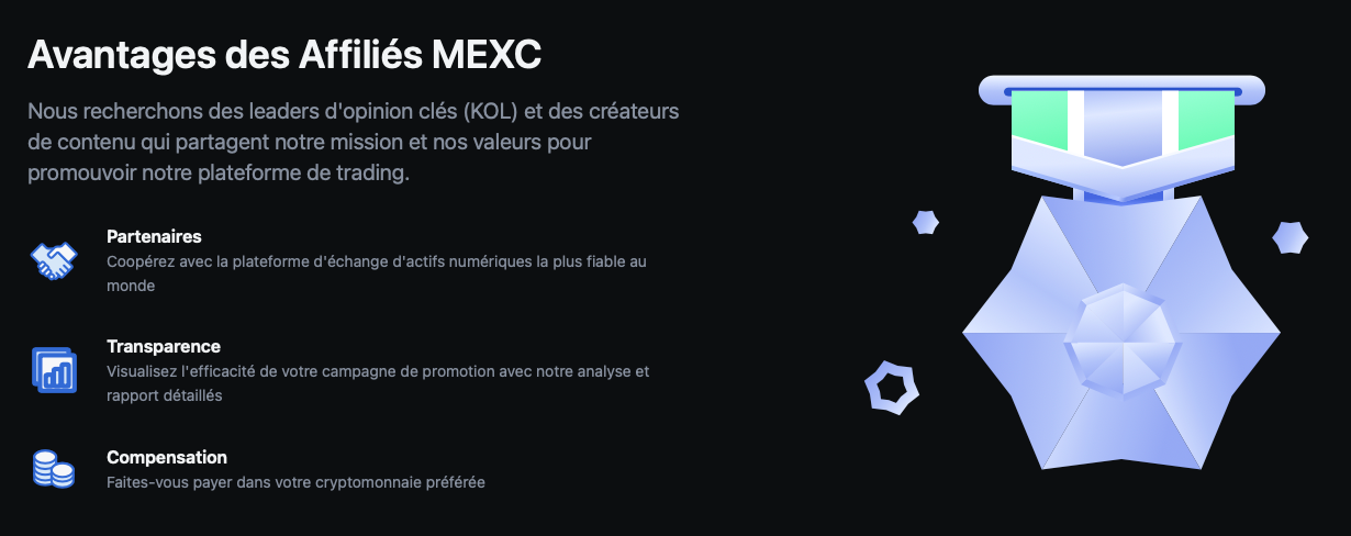- Programme d’affiliation MEXC : notre choix n°1 avec jusqu’à 70 % de commissions pour les pros du marketing