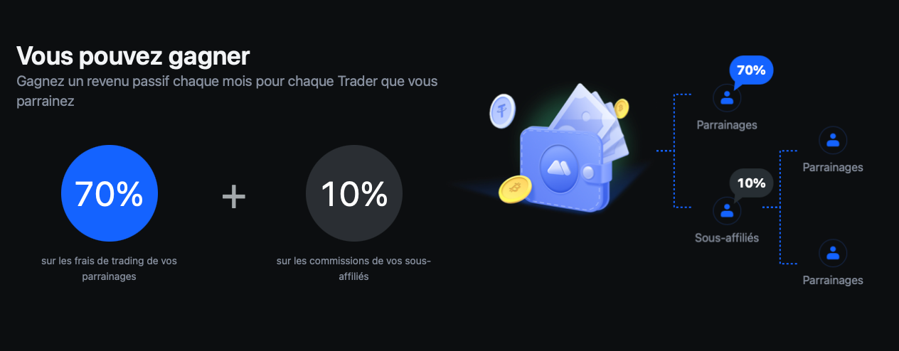 MEXC est l’une des plateformes d’affiliation crypto les plus rémunératrices avec des commissions allant jusqu’à 70 %.