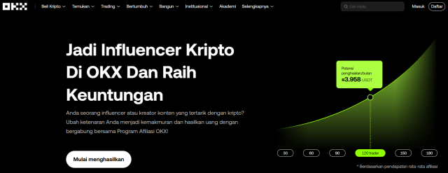 Ingin mencoba peluang program afiliasi kripto terbaik ini? Kunjungi OKX sekarang untuk mengetahui lebih lanjut tentang program affiliate crypto mereka dan mulai menghasilkan hadiah dari referral Anda.