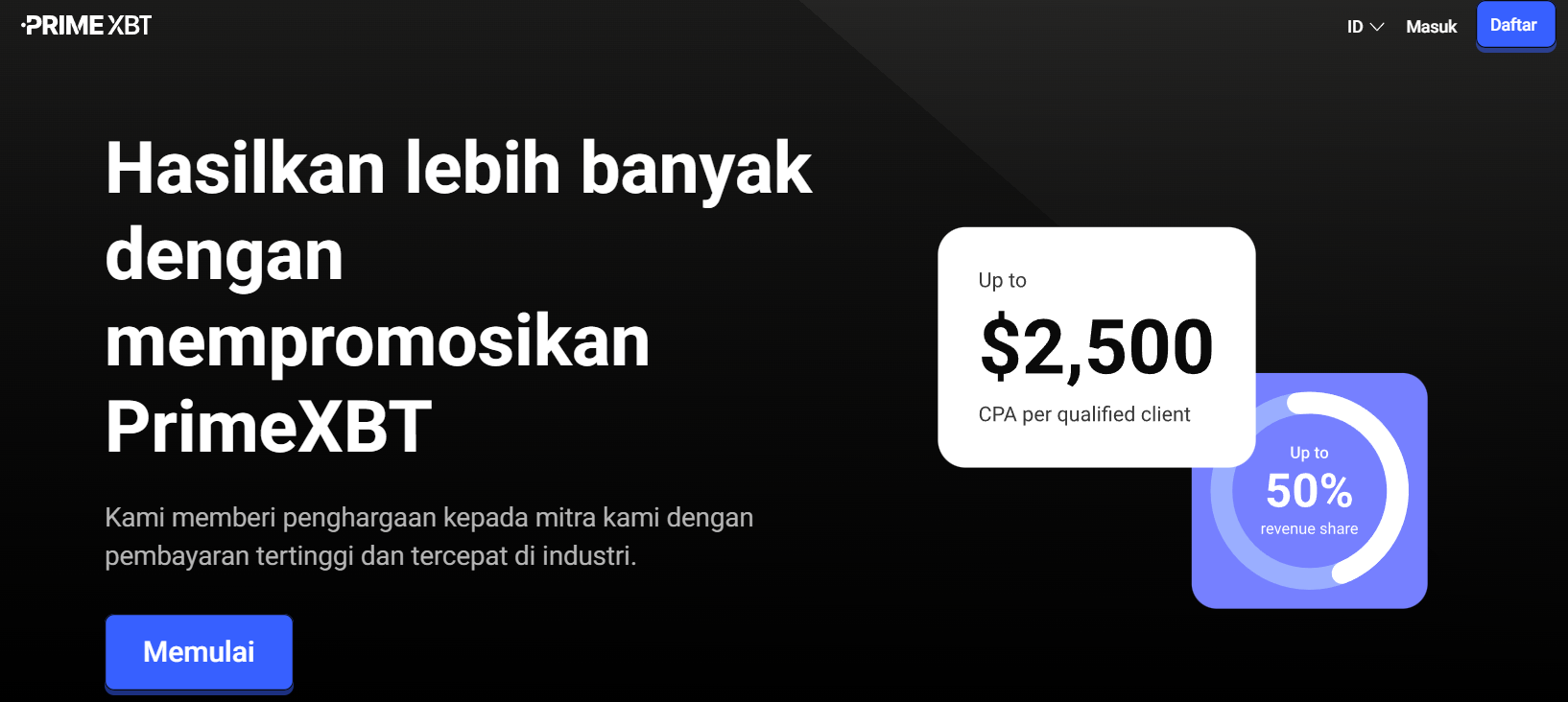 - PrimeXBT – Bagi Hasil hingga 50% dari Biaya Trading Referral