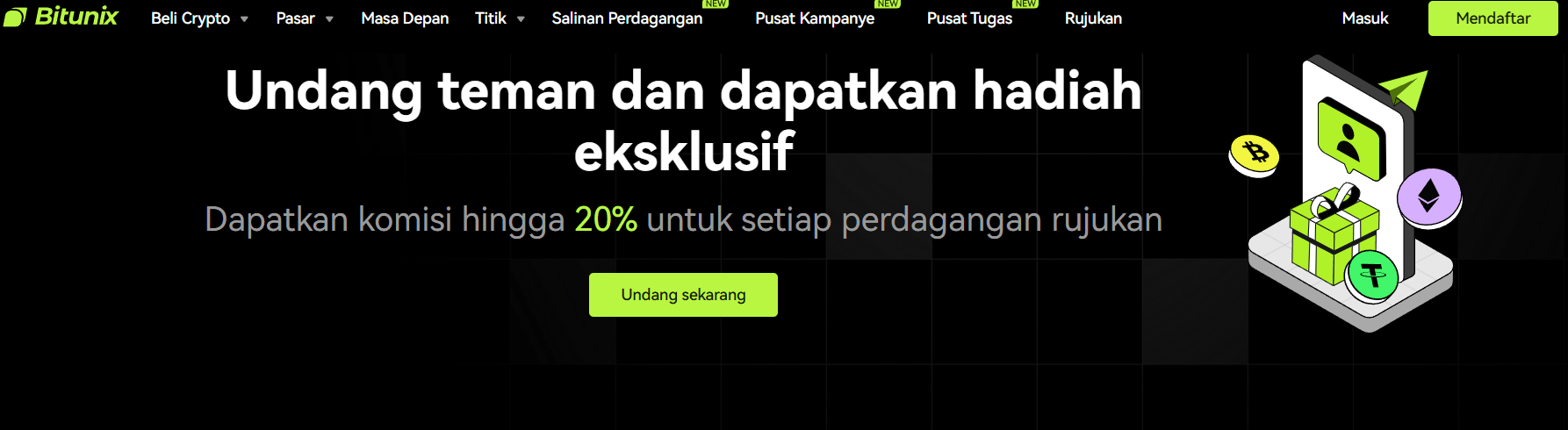 - Bitunix – Komisi hingga 20% dan Bonus hingga $8.000 untuk Anggota Baru