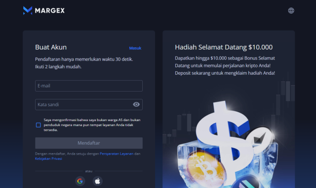 Langkah pertama adalah membuat akun di Margex. Caranya sangat mudah: