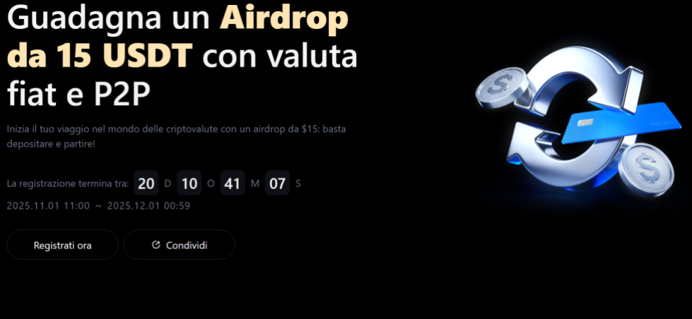 Il secondo evento, denominato “Fiat & P2P Fest – Lucky Draw”, è aperto a tutti gli utenti MEXC, sia nuovi che già registrati. L’obiettivo è premiare l’attività costante degli utenti e incentivare l’utilizzo dei canali fiat e P2P, sempre più popolari tra i trader che desiderano ricaricare i propri conti in modo rapido e sicuro.