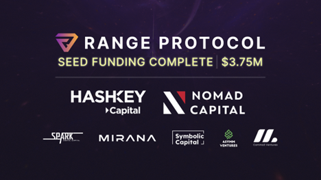 September 12, 2023, Singapore — Range Protocol is excited to announce the successful closing of a $3.75M seed funding round, co-led by HashKey Capital and Nomad Capital and with participation from Spark Digital Capital, Mirana Ventures, Symbolic Capital, Asymm Ventures, and Comma3 Ventures.