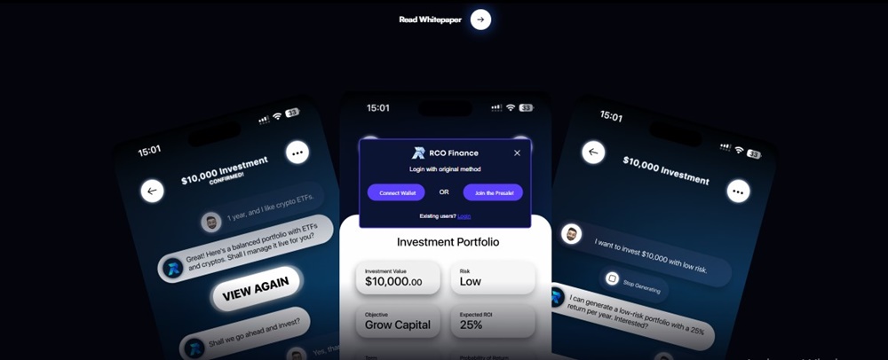 Điểm nổi bật của RCO Finance là AI-powered Robo Advisor. Công cụ thông minh này hoạt động như một nhà quản lý đầu tư tự động, phân tích lượng lớn dữ liệu thị trường để đưa ra các chiến lược đầu tư cá nhân hóa. Các chiến lược này được điều chỉnh theo mục tiêu tài chính, khả năng chấp nhận rủi ro và sở thích của người dùng, cho phép các nhà giao dịch mới và có kinh nghiệm điều hướng sự phức tạp của thị trường tài chính.