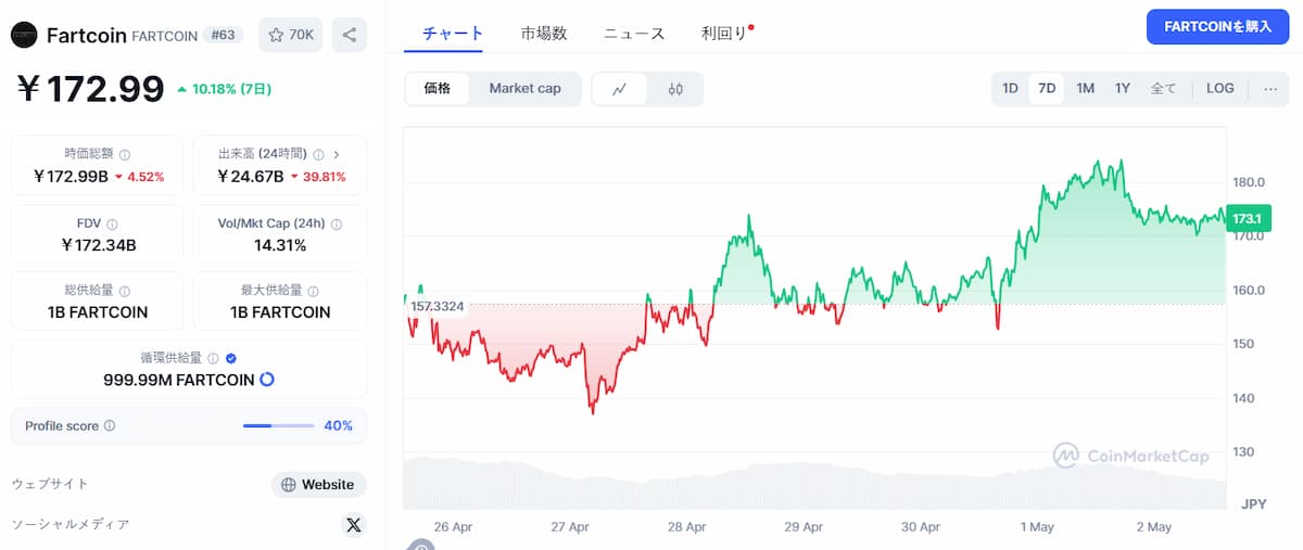 例えば、Sigil FundがFartcoinの初期投資家だと噂されています。Bloombergのエリック・バルチュナス氏もFartcoinに興味を示しています。X(旧Twitter)で何度もその話をしています。