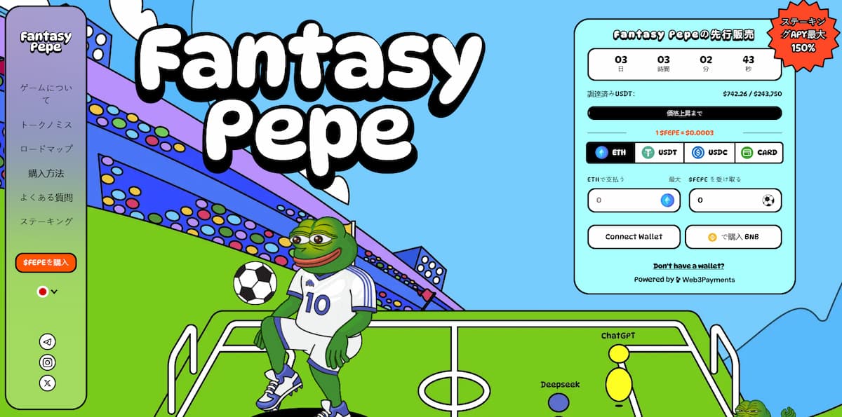 新しい仮想通貨「Fantasy Pepe(ファンタジー・ペペ)」が注目されています。このプロジェクトは、ミーム文化とファンタジーフットボールを組み合わせています。ブロックチェーン上で新しいゲーム体験が可能になります。