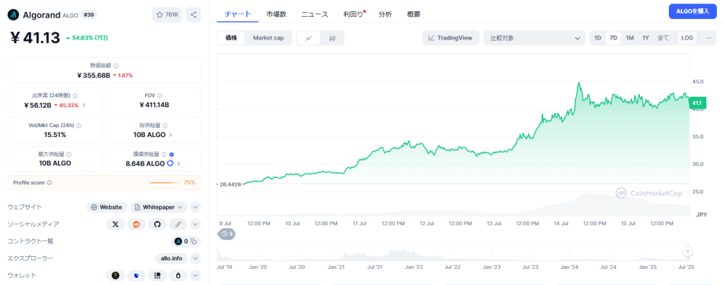 さらに、Binance(バイナンス)とCoinbase(コインベース)が$ALGOのステーキングに対応したことで、新たな買い圧力も生まれている。