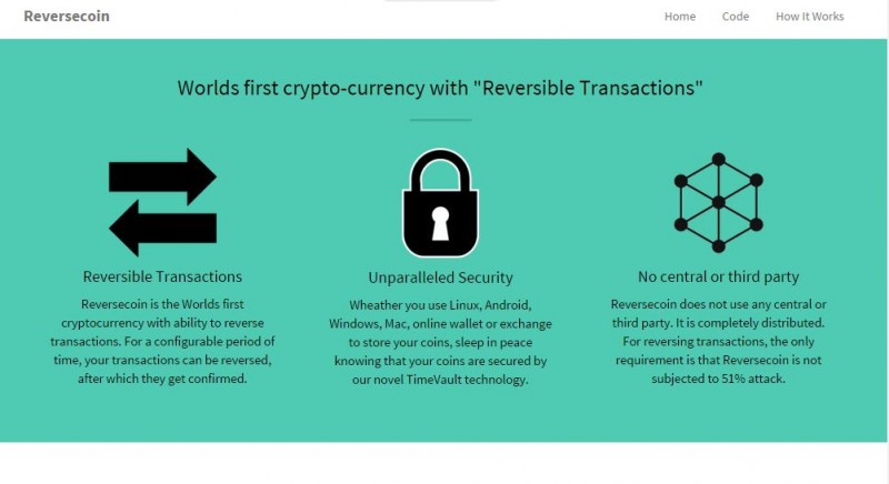 Reversecoin is the World’s first cryptocurrency that allows users to reverse transactions. Reversecoin will give users the chance to reverse transactions within a configurable period of time while granting them full access at any time to their coins by a combination of the best online and offline wallet technology.