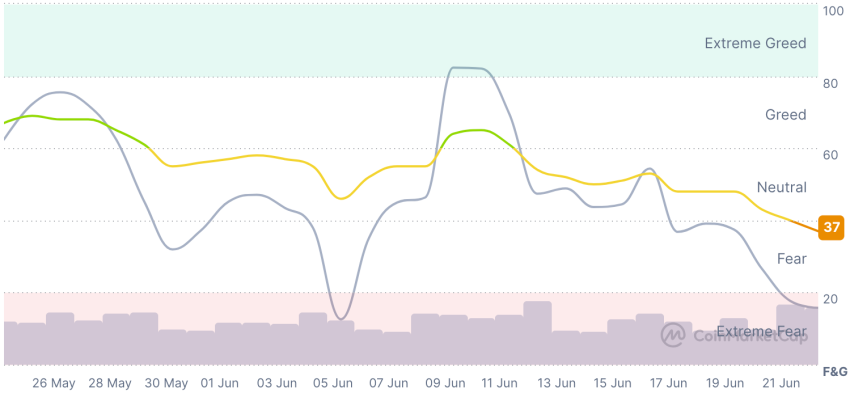 Deze dalingen zorgden ervoor dat investeerders voorzichtiger werden. Dit heeft directe impact op de Fear & Greed index. Op het moment van schrijven staat deze index op 37, waar deze afgelopen week nog op 51 stond. Hoewel dit nog geen extreme fear aanwijst, betekent het wel dat investeerders erg terughoudend zijn.