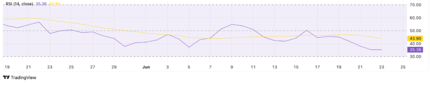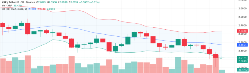 De Bollinger Bands wijzen op verkoopdruk en volatiliteit. Het weerstandsniveau ligt op $2,1694, maar XRP moet hard werken om hier naar toe te klimmen. De huidige RSI bevindt zich nog vlak boven het oversold gebied, wat wijst op een dalende trend maar nog geen bodemvorming. Zolang de Ripple koers onder de $2,17 blijft, blijft deze bearish trend de overhand hebben.