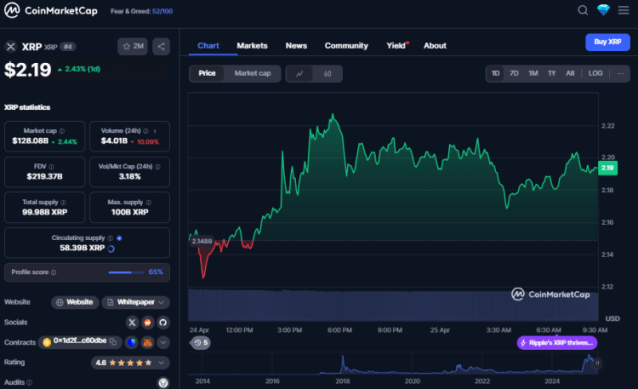 Dit zijn heugelijke tijden voor XRP en dat wordt meteen weerspiegeld in de Ripple koers. In de afgelopen 24 uur steeg de koers met 2,43% naar een huidige waarde van $2,19.