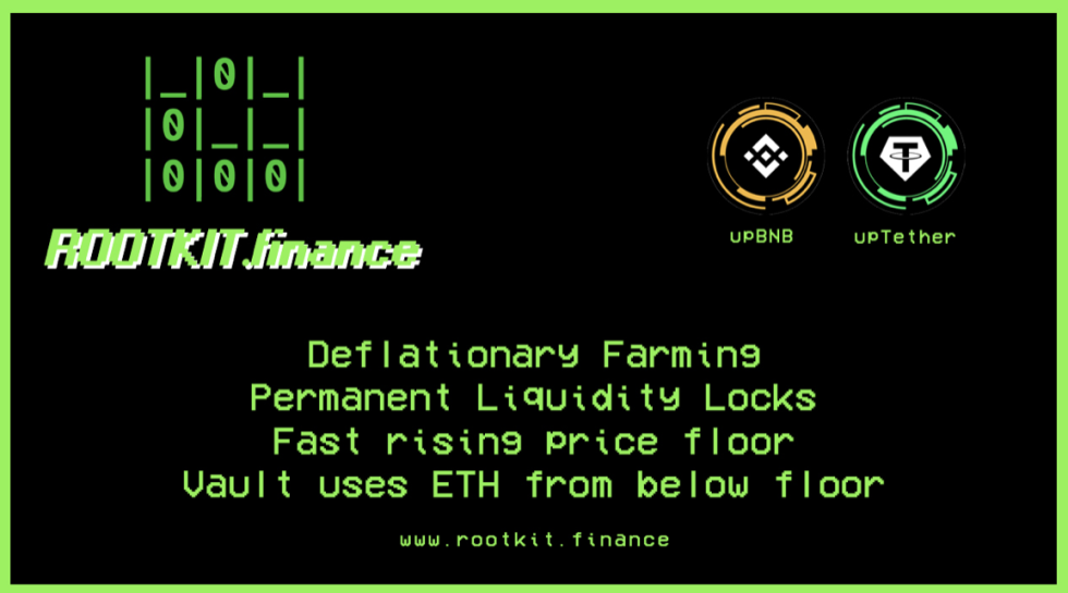 Rootkit acts as a highly deflationary, yield-farmable token that uses permanently locked liquidity pools to unlock new possibilities. The token utilizes the combination of the Uniswap pricing mechanism, a fixed-supply currency, and permanently locked liquidity pools, Rootkit creates a price floor that is easy to calculate and ensures a minimum lifetime price for that token. This allows for the reuse of the ETH locked in the system multiple times, pioneering past the expected norms of traditional economics. The firm promises to revolutionize how Defi and yield farming has been seen up until now.