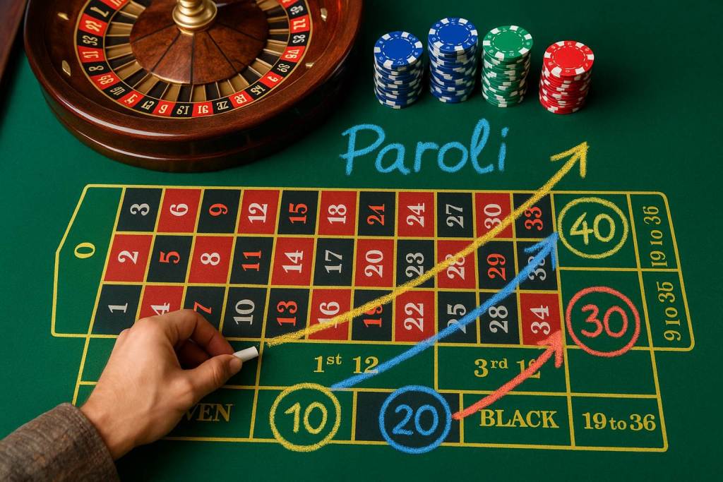 - Paroli: מכפילים הימור רק לאחר ניצחון, עד 2–3 זכיות רצופות, ואז מאפסים – מתמקדת בריצות חיוביות.