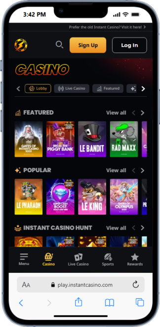 اكتسب Instant Casino شهرته من ميزته التنافسية الأساسية وهي: السرعة. بحيث أن المنصة تم تصميمها للعب بسلاسة وإجراء عمليات سحب فورية، كي تلبي احتياجات اللاعبين الذين يرغبون في الوصول إلى أرباحهم دون أي تأخير. يتميز الموقع بتصميم نظيف وواجهة سهلة الاستخدام، يجعل التنقل بين الألعاب والعروض الترويجية أمراً بسيطاً ومباشراً. على الرغم من تركيزه على السرعة، لا يتهاون الكازينو في الجانب الأمني، حيث يستخدم تشفير SSL ويخضع لترخيص هيئة الألعاب في كوراساو.