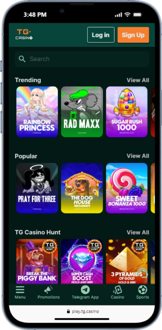 على الرغم من بساطة ولوجه، لا يبخل TG.Casino في تقديم محتوى ترفيهي متنوع ومكافآت سخية. فهو يوفر مجموعة واسعة من ألعاب السلوتس، وألعاب الطاولة، والكازينو المباشر من مزودين معروفين، بالإضافة إلى قسم متكامل للمراهنات الرياضية يضم أكثر من 30 سوقاً مختلفاً. ويقدم TG.Casino مكافأة فريدة من نوعها وهي استرداد نقدي (Rakeback) بنسبة 200% على الرهانات تصل إلى 10 ETH. هذا يعني أن جزءاً من رهاناتك يعود إليك كمكافأة، وهو عرض جذاب للاعبين النشطين.