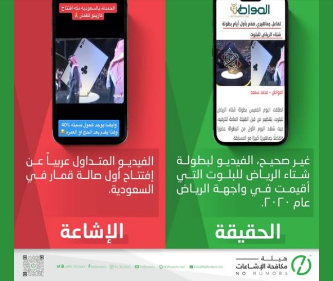 لا، صحة عن خبر إفتتاح أول كازينو في السعودية حتى الآن، حيث تم الترويج لصورة أو فيديو يظهر بطولة شتاء الرياض للبلوت والتي أقيمت في واجهة الرياض عام 2020، على أنها داخل كازينو للقمار في المملكة. ولكن، من الممكن أن يتم افتتاح أول كازينو قانوني على الأراضي السعودية في مدينة نيوم، كجزء من مشاريع رؤية 2030. وحتى الآن، يلجأ السعوديون إلى مواقع الكازينو الأجنبية واللعب فيها بالعملات الرقمية أو المحافظ الإلكترونية.