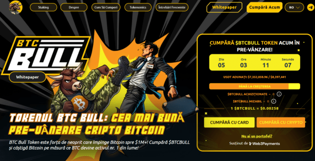 Păstrând direcția în zona de memecoins, BTC Bull Token abordează într-un mod aparte comunitățile din jurul celui mai important activ de pe planetă, Bitcoin. Mai exact, încearcă să-i atragă printr-un model care îmbină elemente economice cu psihologia din spatele marketingului.