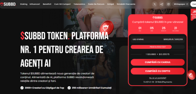 Fiind un ecosistem în care nu există intermediarii clasici, ci doar relații directe susținute de tehnologie, SUBBD se apropie cu pași repezi de suma de 700 de mii de dolari în presale. Tokenul $SUBBD este pus la dispoziția investitorilor la prețul de 0,05575 de dolari.