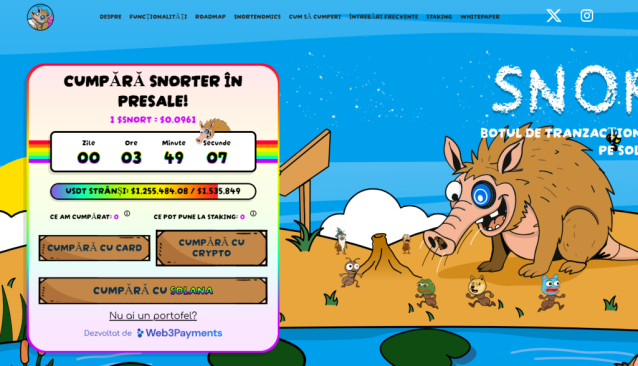 În presale-ul aflat în desfășurare, echipa a reușit deja să vândă $SNORT în valoare de peste 1,2 milioane de dolari, semn că investitorii au înțeles că proiectul e mai mult decât un memecoin cu nume interesant.