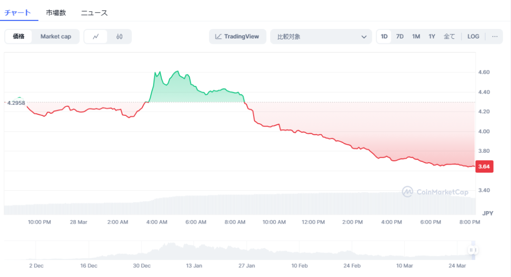 現在、FAIの24時間取引量は295万ドル(約4億4,400万円)から1,244万ドル(約18億7,300万円)へと急増し、321%の上昇を記録している。