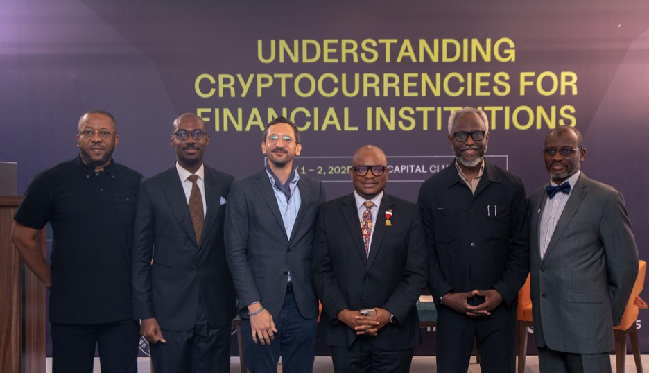 Image (L-R): Anya Edmund Duroha Chairman, African Founders Launchpad; Buchi Okoro, Co-founder and Chief Executive Officer of Quidax; Pascal Maguire, Sales Director for Africa at Fireblocks; Ajibade Laolu Adewale, Chairman of the Committee of E-Business Heads in Nigerian Banks and Chief Partnership Officer at Wema Bank; Ugodre Obi-Chukwu, Founder and CEO at Nairametrics; Abdulrasheed Dan Abu, Head of FinTech and Innovation at the Securities and Exchange Commission (SEC).