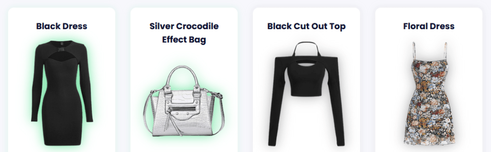 - Apģērbs: topi, crop-topi, kleitas, svārki