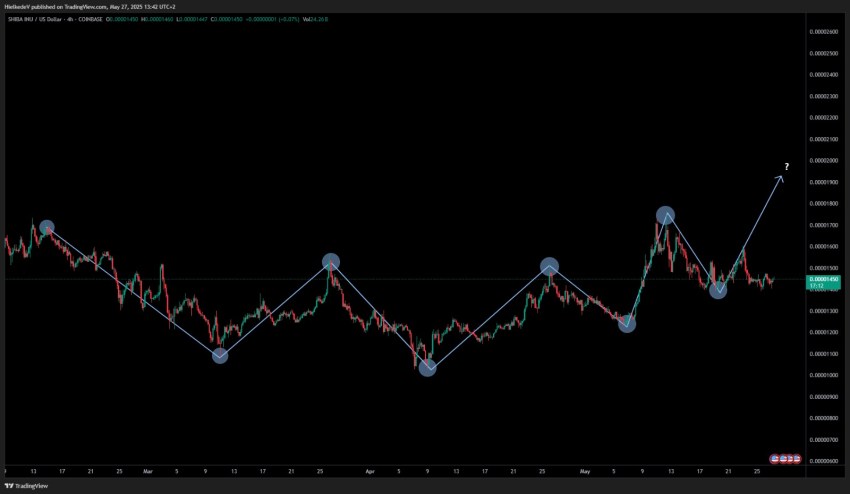 In de bovenstaande afbeelding kunnen het koersverloop van Shiba Inu over de afgelopen maanden zien. Na een lange periode van een dalende trend, lijkt het erop dat de koers nu eindelijk een kanteling aan het maken is. De dalende trend wordt gekenmerkt door lagere toppen gevolgd door lagere bodems. Deze trend lijkt zich nu te gaan omdraaien, omdat we hogere toppen en hogere bodems kunnen waarnemen. Een bullish relief rally op korte termijn is dus niet onwaarschijnlijk.
