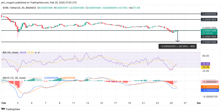Momenteel beweegt SHIB zich rond de $0,000014, een belangrijk niveau dat in 2024 als sterke ondersteuning diende. De omstandigheden op de cryptomarkt blijven echter vooral bearish, wat zorgen oproep bij crypto traders. Mocht SHIB geen stand houden, dan kan een neerwaartse druk de koers terugbrengen naar niveaus die we al maanden niet gezien hebben.