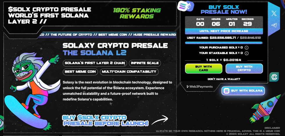 Ранните инвеститори, които искат да подкрепят проекта на етапа на развитие, могат да закупят монети $SOLX на официалния сайт само за $0.00164. Това е минималната цена на токена и крипто общността вече се подготвя да посрещне новия експлозивен лидер. Остава все по-малко време до листването на борсите, което означава и все по-малко време до излитането на $SOLX.