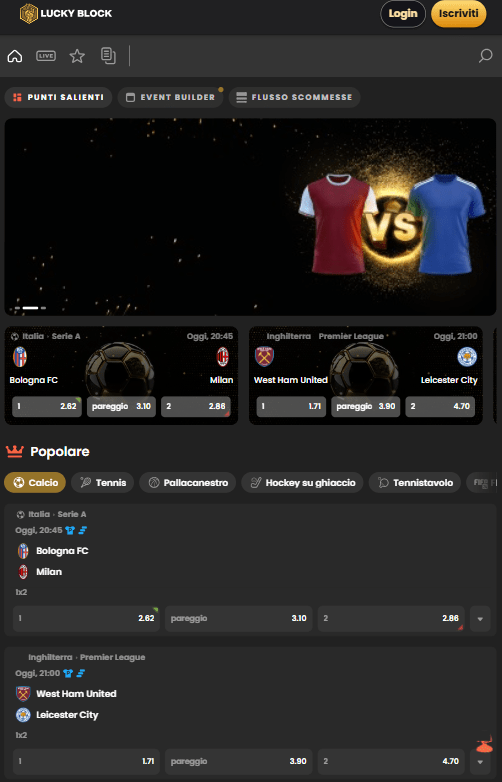 L’utilizzo di LBLOCK permette ai giocatori di ottenere bonus esclusivi, programmi VIP personalizzati e promozioni uniche. Lucky Block non si limita solo al casino: offre anche una sezione scommesse sportive con un palinsesto completo e quote competitive.