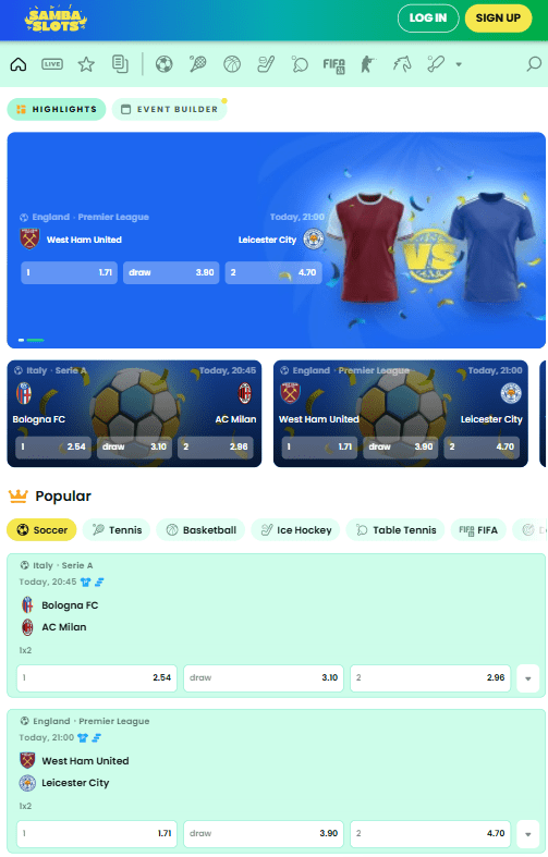 Oltre alle slot, Samba Slots propone anche una sezione dedicata alle scommesse sportive, con quote competitive e una vasta gamma di discipline, dalle più popolari agli sport di nicchia. Un portale più che valido dove sono accettate anche le criptovalute.