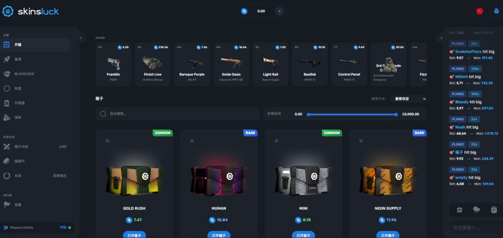 除了強調數據公開,SkinsLuck還整合加密貨幣支付系統,用戶可直接使用比特幣、以太幣等主流代幣參與抽獎、交易或即時提現,資金轉換不再依賴中心化金融渠道,整體體驗更加自由流暢。