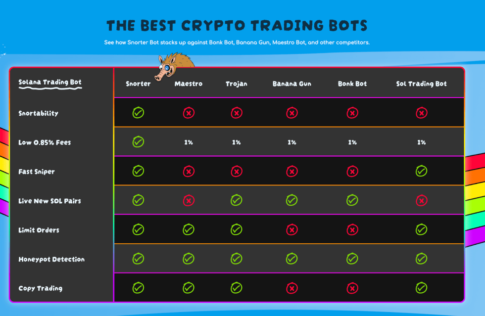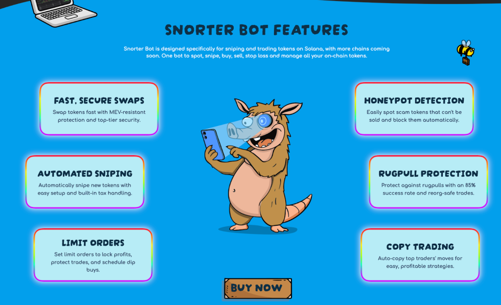 Snorter Bot не е просто още един меме койн без цел. Това е завършен инструмент с реална функционалност, който съчетава забавната култура на меме криптото с модерни технологии. Платформата предлага: