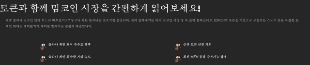 스노터 토큰($SNORT)은 시장에 상장되기 전 최적의 밈코인을 선점하고 잠재적 수익을 확보할 수 있도록 돕는 다양한 기능을 갖춘 암호화폐 트레이딩 봇을 제공하고 있다.