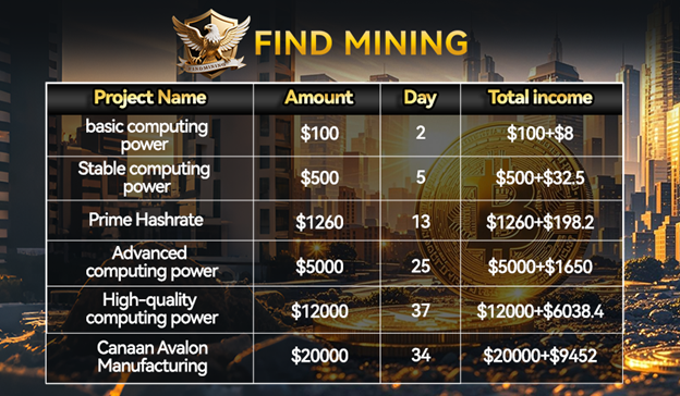 FINDMINING has currently launched a number of popular computing power contracts, as shown below: