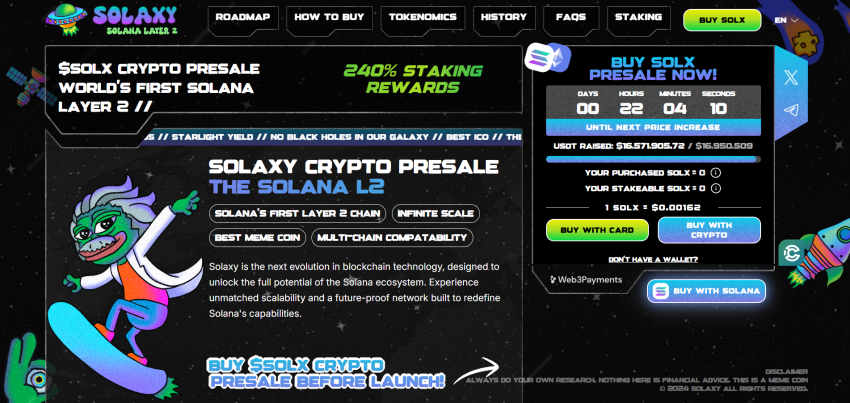 In dat geval hebben we het over Solaxy. Voor de traders die dit netwerk nog niet kennen: Solaxy is een layer-2 oplossing voor het Solana netwerk. Dat betekent dat Solaxy uniek is, omdat er verder geen layer-2 oplossingen voor Solana bestaan.