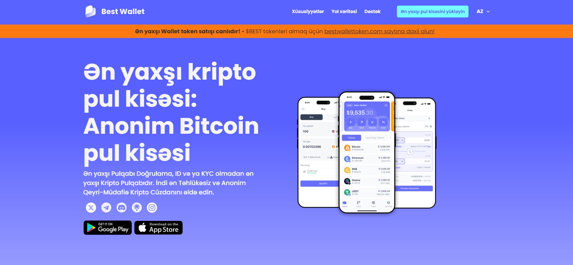 Əgər “Solana necə alınır” sualı sizi düşündürürsə və siz anonim, sürətli və rahat bir yol axtarırsınızsa, Best Wallet ideal seçim ola bilər. Bu mobil kripto cüzdan, sadə istifadəsi və zəngin funksiyaları ilə istifadəçilərin diqqətini cəlb edir. Hesabınızı yaratmaq üçün (oluşturun) Best Wallet tətbiqini yükləyin və qeydiyyat prosesini tamamlayın.