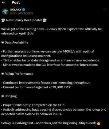 Solana superó el nivel de los 140 dólares el domingo y continuó cotizando justo por debajo de ese nivel el lunes. Pero la verdadera sorpresa de Pascua para la cadena podría haber sido Solaxy, que ahora ha lanzado su explorador de blockchain en testnet. Esta herramienta sienta las bases para rastrear transacciones en la Capa 2 de Solaxy antes de ser agrupadas y comprometidas en la red principal de Solana.