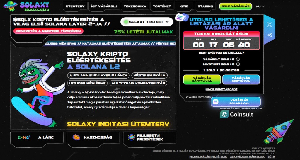 Miközben a mémérmék iránti lelkesedés lassan alábbhagy, a Solaxy valós alapokra épít. Több tízmilliós előértékesítéssel, működő technológiával és valódi felhasználási esettel a projekt lehetőséget kínál a magyar befektetőknek is, hogy egy új korszak részeseivé váljanak a kriptovilágban.