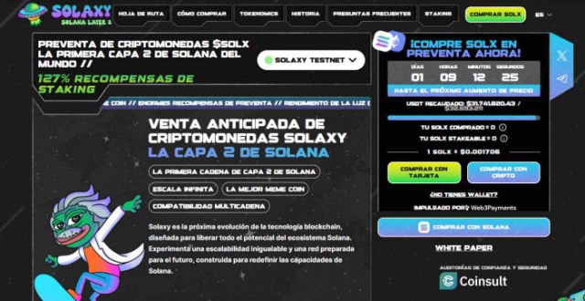 Solaxy (SOLX) es una solución de capa 2 de Solana que ha llegado para resolver los problemas de congestión de Solana. Solaxy procesará las transacciones en su red y una vez completadas, las enviará de nuevo a la cadena principal de Solana. De esta manera, resolverá los problemas de escalabilidad de Solana.