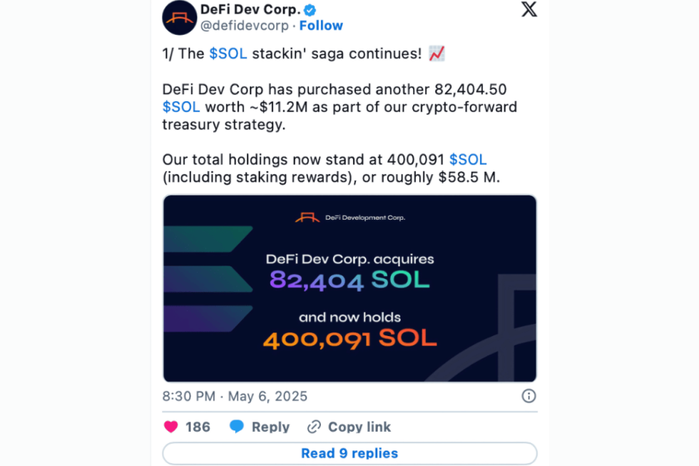 Η VanEck λάνσαρε το tokenized fund της για τα αμερικανικά κρατικά ομόλογα απευθείας στο Solana. Η DeFi Development Corp. (πρώην Janover) επένδυσε πρόσφατα $12 εκατομμύρια στο οικοσύστημα του Solana και απέκτησε validator με πάνω από 500.000 staked $SOL. Η SOL Strategies είναι άλλος ένας εισηγμένος οργανισμός που αποκτά ενεργά $SOL. Και φυσικά, υπάρχουν και τα αιτήματα για ETFs από 21Shares, Bitwise, Canary Capital και VanEck, με στόχο την προσθήκη έκθεσης στο Solana.