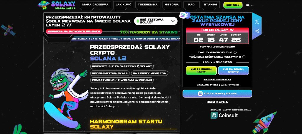 Zabezpieczony przez pełny audyt przeprowadzony przez CyberScope i wspierany przez strategiczne partnerstwo z giełdą WEEX Exchange, projekt dysponuje infrastrukturą i wsparciem niezbędnym do zdobycia realnej trakcji na rynku. W kontekście spadającego zainteresowania tokenami bez użyteczności, Solaxy błyszczy wartością, jaką wnosi do ekosystemu blockchain. Teraz jest idealny moment, aby zapewnić sobie ekspozycję na jedną z najbardziej obiecujących inicjatyw krypto tego roku i przygotować się na znaczący wzrost.