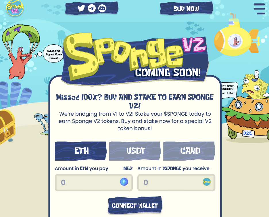 Popular memecoin Sponge is making a comeback with Sponge V2, with an all-new roadmap, fundamentals, and a novel staking model, giving memecoin investors the biggest APY in the memecoin space.
